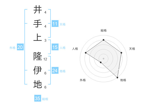 井手上 隆伊地さんを姓名の画数から五運を鑑定