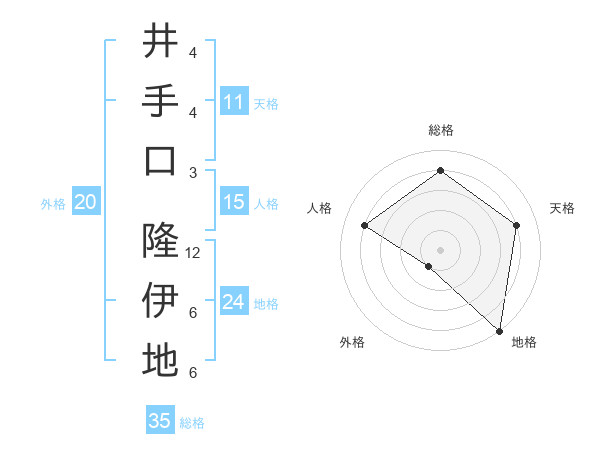 井手口 隆伊地さんの地格は24画の5点!