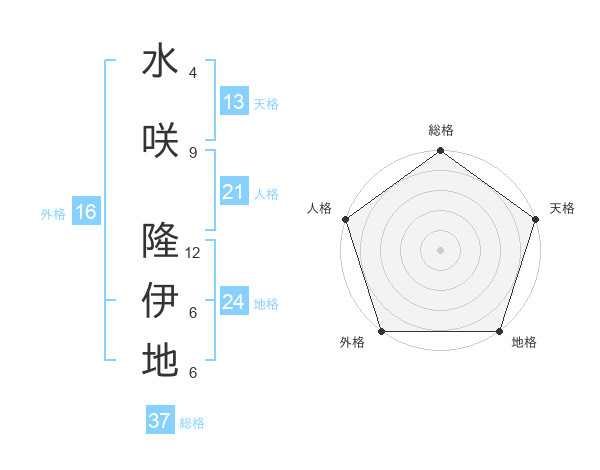 水咲 隆伊地さんの総格は37画の5点!