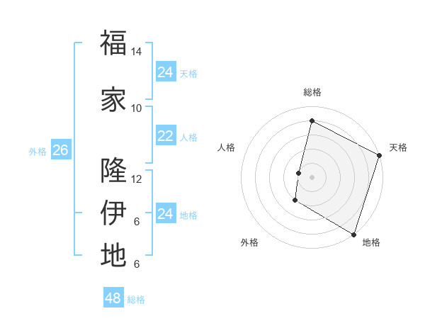 福家 隆伊地さんを姓名の画数から五運を鑑定