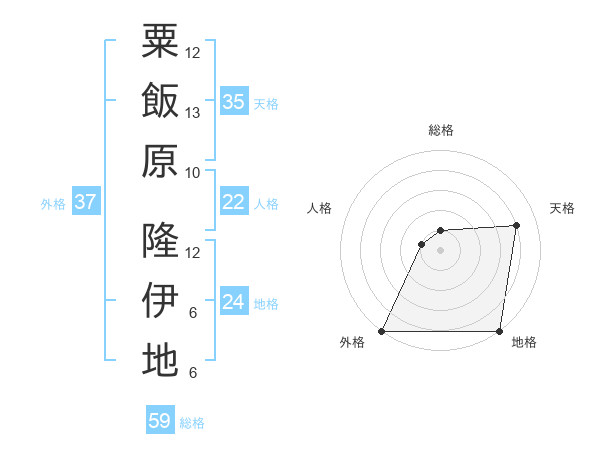 粟飯原 隆伊地さんの外格は37画の5点!