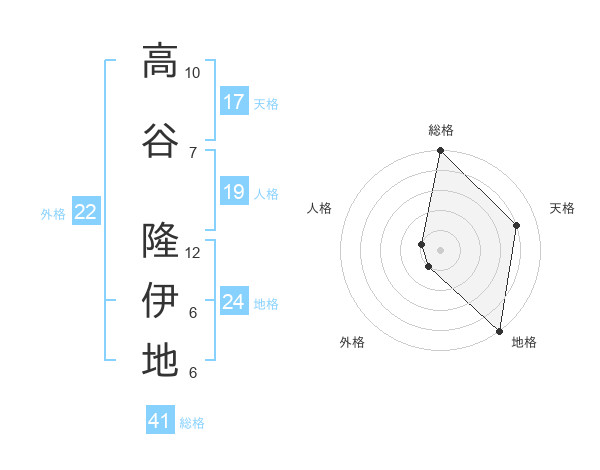 高谷 隆伊地さんを姓名の画数から五運を鑑定