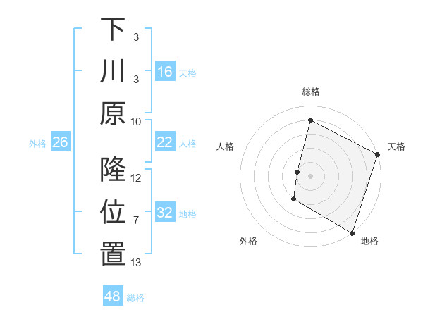 下川原 隆位置さんの総格は48画の4点!