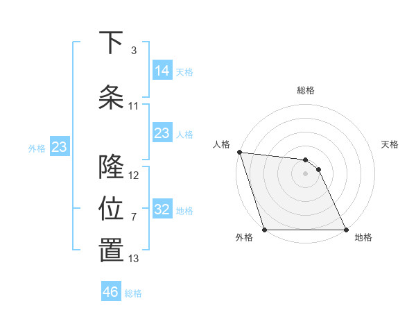 下条 隆位置さんを姓名の画数から五運を鑑定