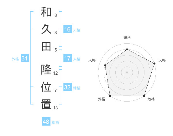 和久田 隆位置さんを姓名の画数から五運を鑑定