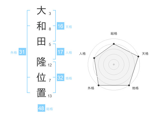 大和田 隆位置さんを姓名の画数から五運を鑑定