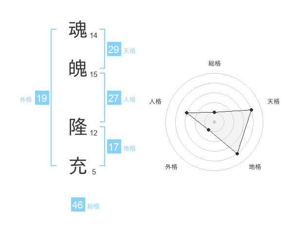 魂魄 隆充さんを姓名の画数から五運を鑑定