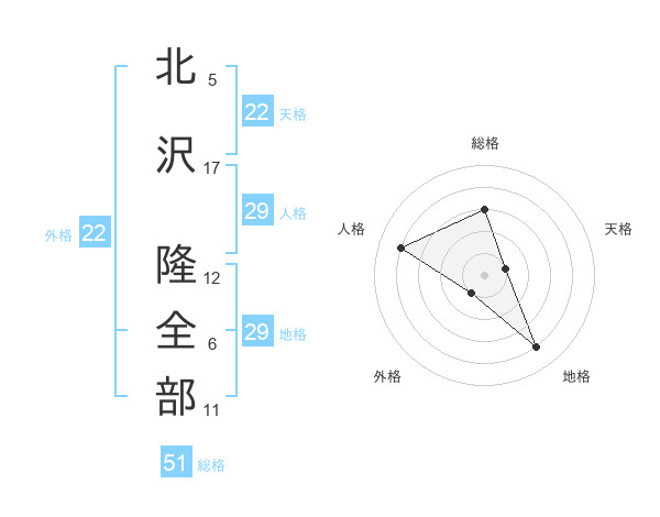 北沢 隆全部さんを姓名の画数から五運を鑑定