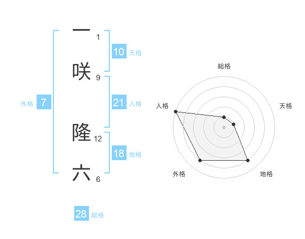 一咲 隆六さんを姓名の画数から五運を鑑定