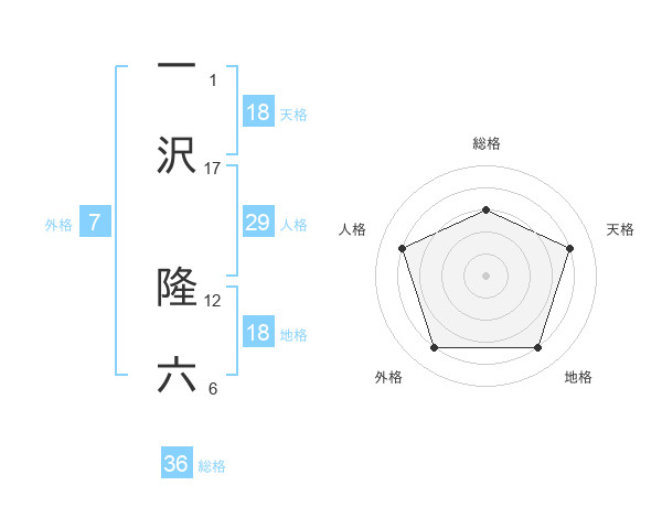 一沢 隆六さんを姓名の画数から五運を鑑定