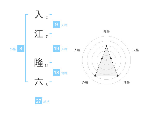 入江 隆六さんの総格は27画の3点!