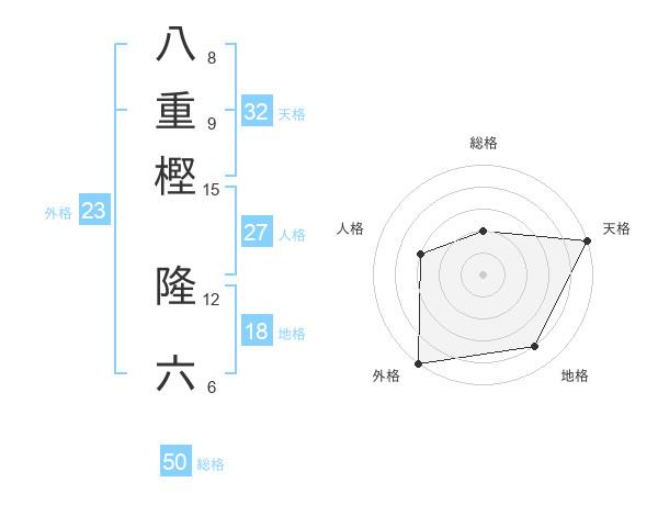 八重樫 隆六さんを姓名の画数から五運を鑑定