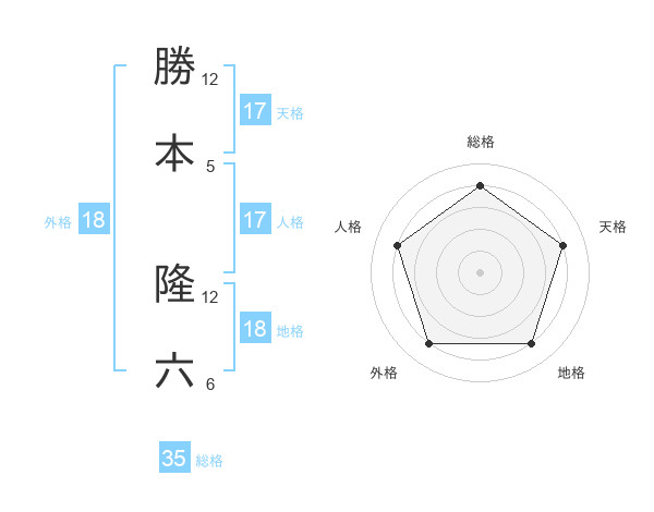 勝本 隆六さんの総格は35画の4点!