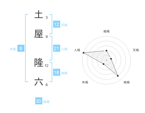 土屋 隆六さんを姓名の画数から五運を鑑定