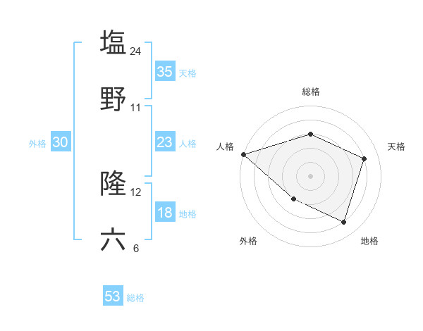 塩野 隆六さんの総格は53画の3点!