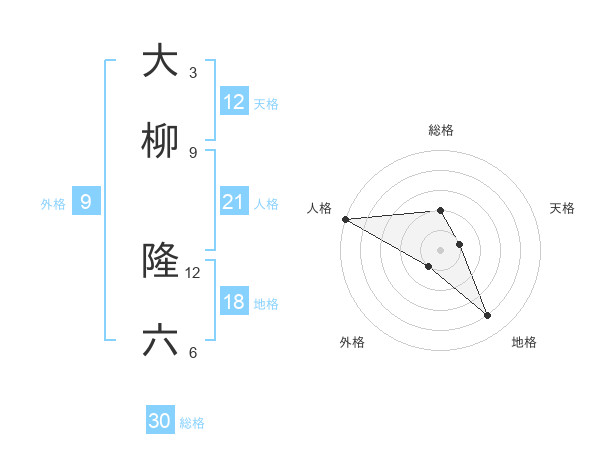 大柳 隆六さんの総格は30画の2点!