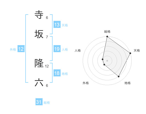 寺坂 隆六さんを姓名の画数から五運を鑑定