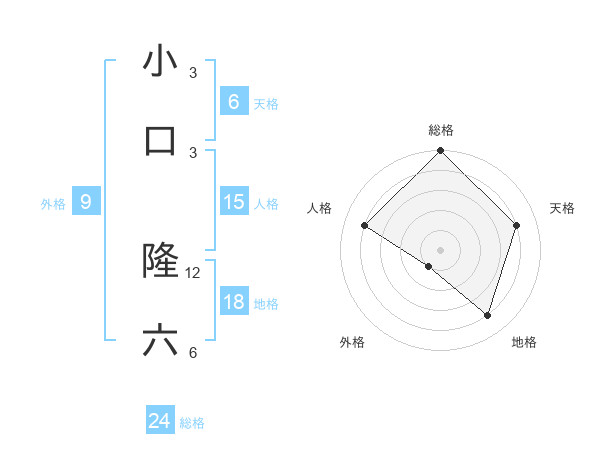 小口 隆六さんの総格は24画の5点!