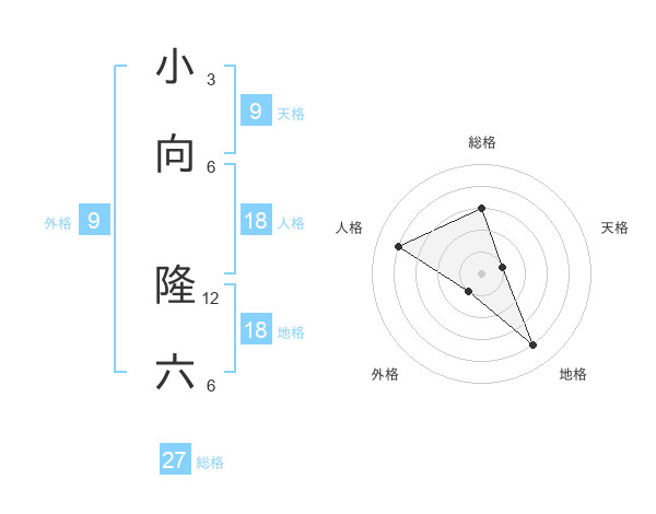 小向 隆六さんの総格は27画の3点!