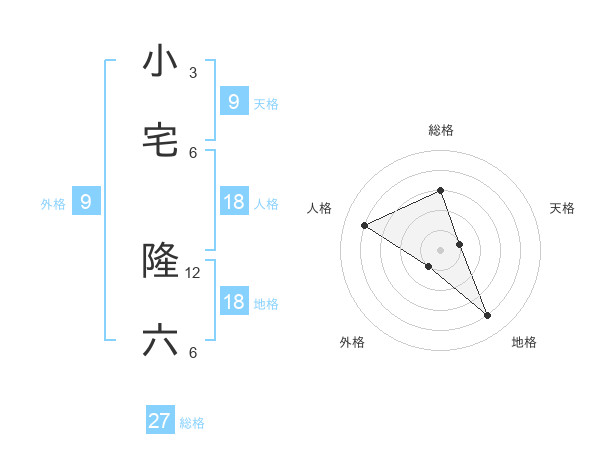 小宅 隆六さんを姓名の画数から五運を鑑定
