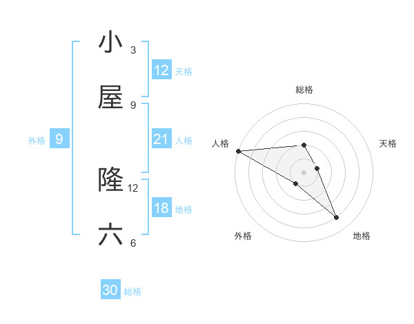 小屋 隆六さんを姓名の画数から五運を鑑定