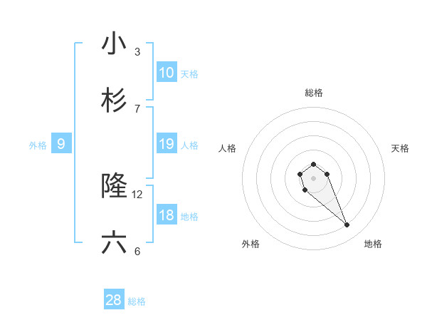 小杉 隆六さんを姓名の画数から五運を鑑定