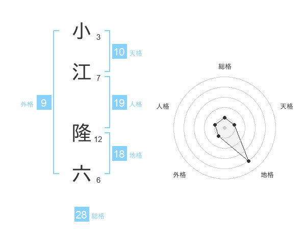 小江 隆六さんの総格は28画の1点!