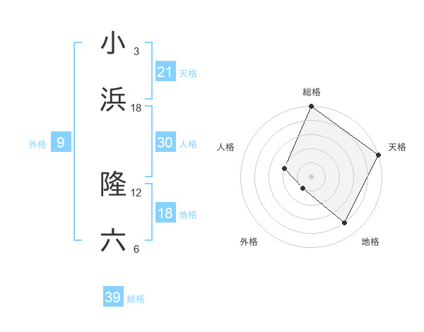 小浜 隆六さんの総格は39画の5点!