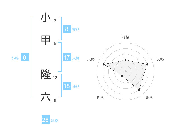 小甲 隆六さんを姓名の画数から五運を鑑定
