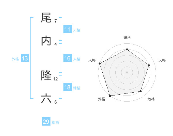 尾内 隆六さんの総格は29画の4点!