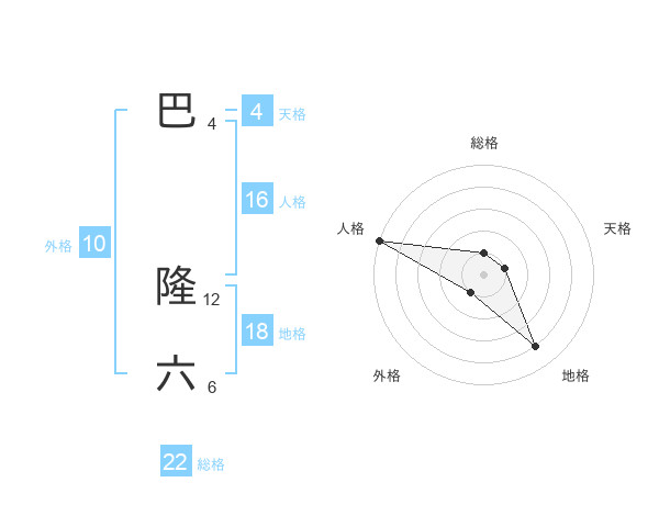 巴 隆六さんの総格は22画の1点!