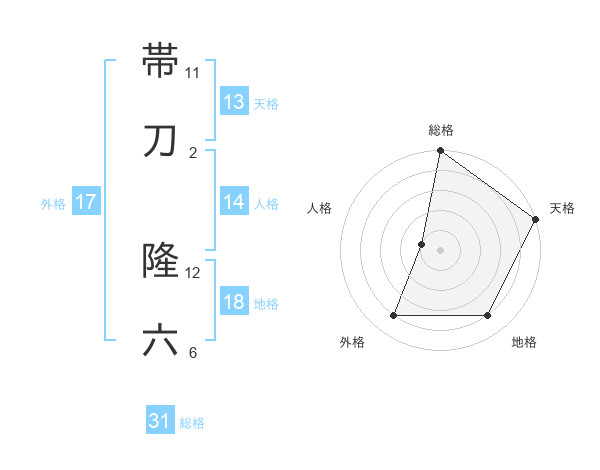 帯刀 隆六さんの総格は31画の5点!