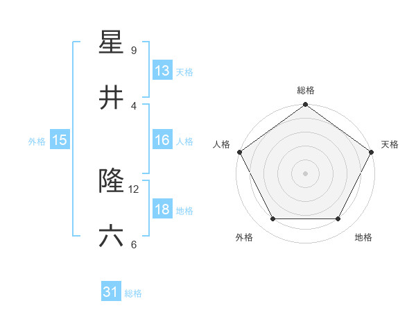 星井 隆六さんの総格は31画の5点!