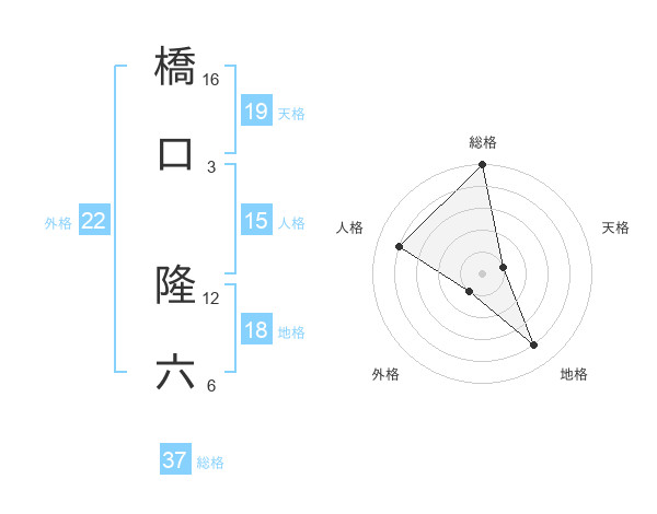 橋口 隆六さんを姓名の画数から五運を鑑定