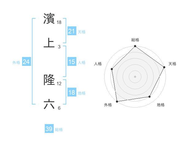 濱上 隆六さんの総格は39画の5点!