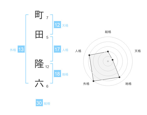 町田 隆六さんの外格は13画の5点!