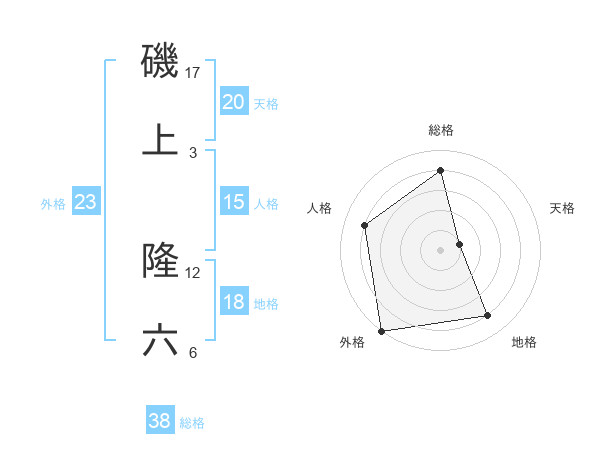 磯上 隆六さんの外格は23画の5点!