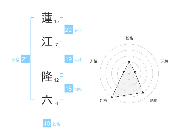 蓮江 隆六さんの外格は21画の5点!