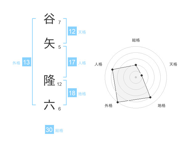 谷矢 隆六さんを姓名の画数から五運を鑑定