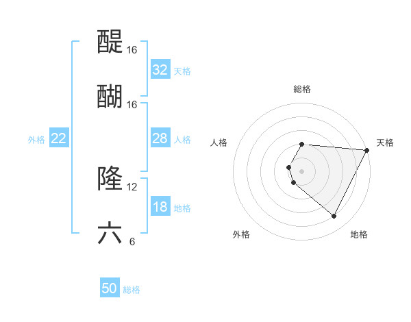 醍醐 隆六さんの外格は22画の1点!