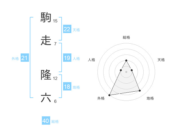 駒走 隆六さんを姓名の画数から五運を鑑定