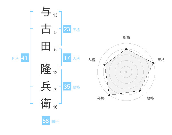 与古田 隆兵衛さんを姓名の画数から五運を鑑定