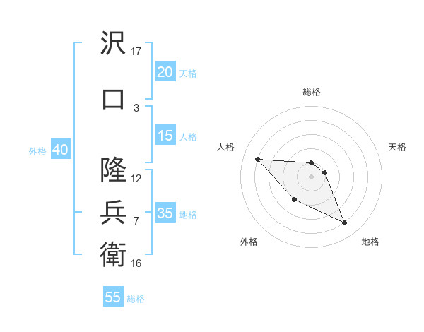沢口 隆兵衛さんを姓名の画数から五運を鑑定