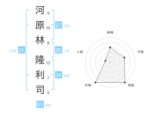 河原林 隆利司さんを姓名の画数から五運を鑑定