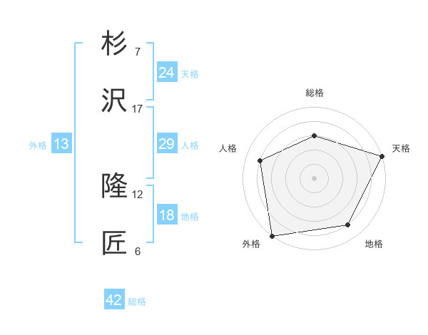 杉沢 隆匠さんを姓名の画数から五運を鑑定