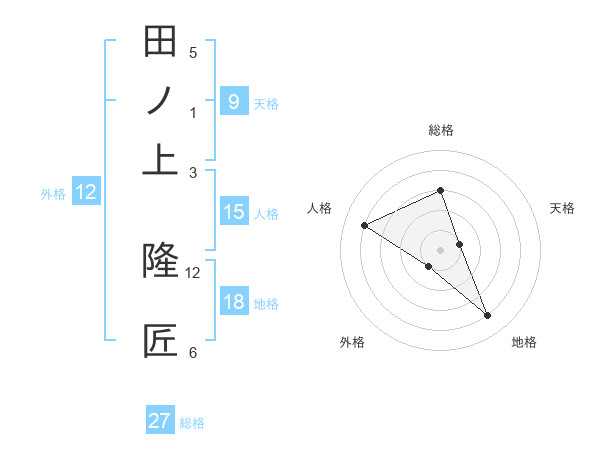 田ノ上 隆匠さんの総格は27画の3点!