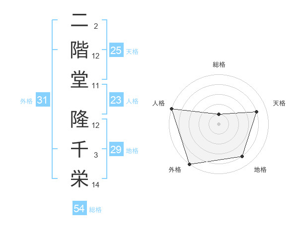 二階堂 隆千栄さんを姓名の画数から五運を鑑定