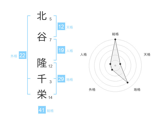 北谷 隆千栄さんを姓名の画数から五運を鑑定