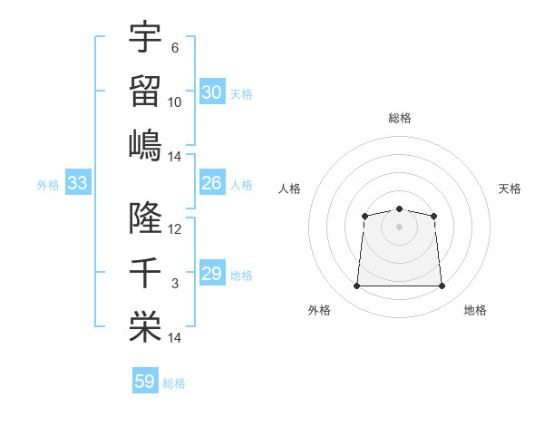 宇留嶋 隆千栄さんの総格は59画の1点!