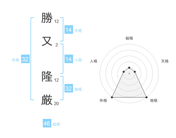 勝又 隆厳さんの総格は46画の1点!